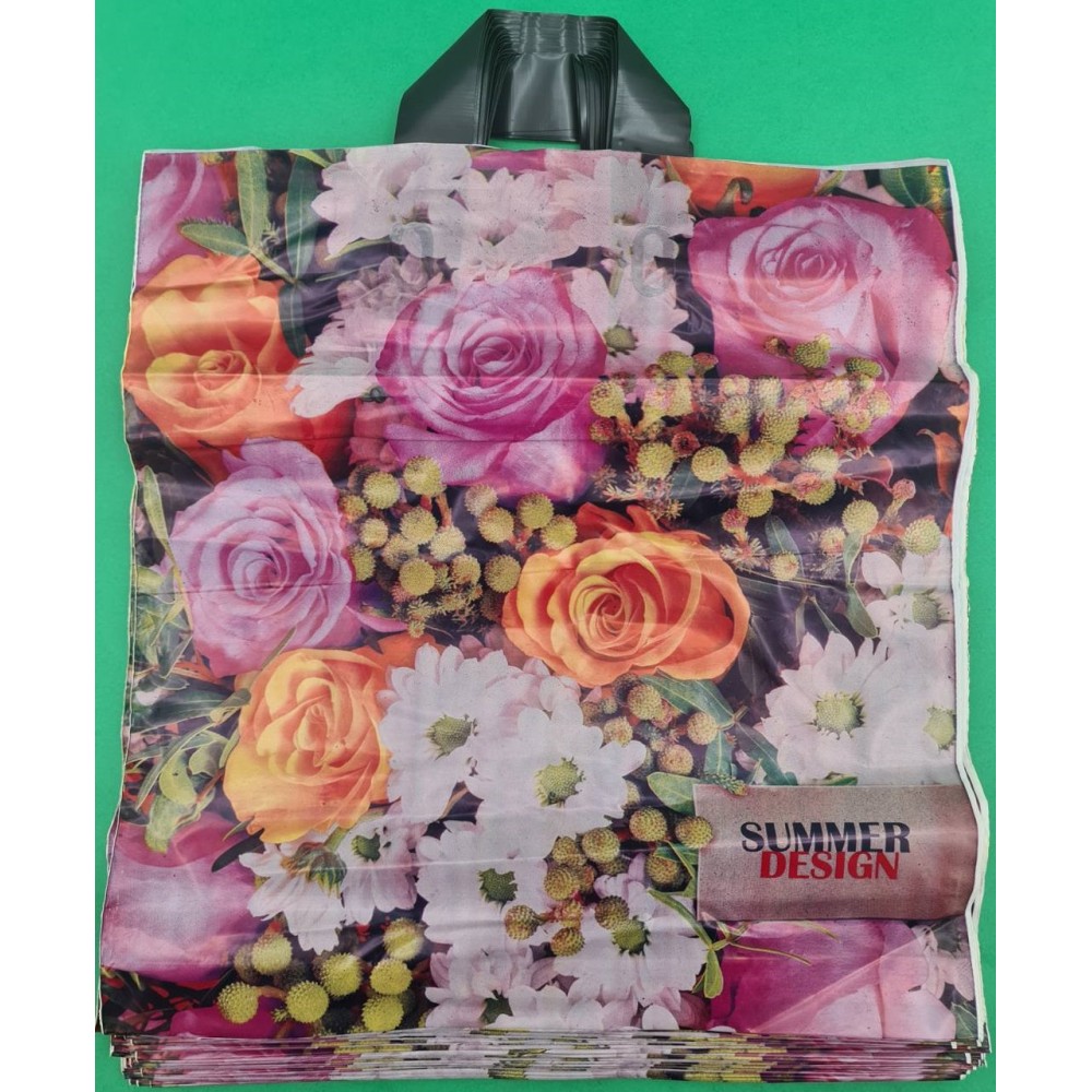 Полиэтиленовый пакет с прорубной ручкой (пакет Банан) – Название его произошло из-за оригинального вида, где по центру в верхней части пакета ,вырубается ручка что делает пакет более удобным в использовании. Этот вид полиэтиленового пакета больше относиться к имедживому классу. Пакет имеет презентабельный вид, в основном используется как рекламный, из-за его эластичности. Рисунок который наносится на этот вид полиэтиленового пакета никогда не искажается через высокую плотность и гладкость полиэтилена. В пакете присутствует донная складка которая располагается внизу пакета, что делает его более вместительным и компактным. Пакеты такого типа часто используются в магазинах, бутиках,и в других сферах .