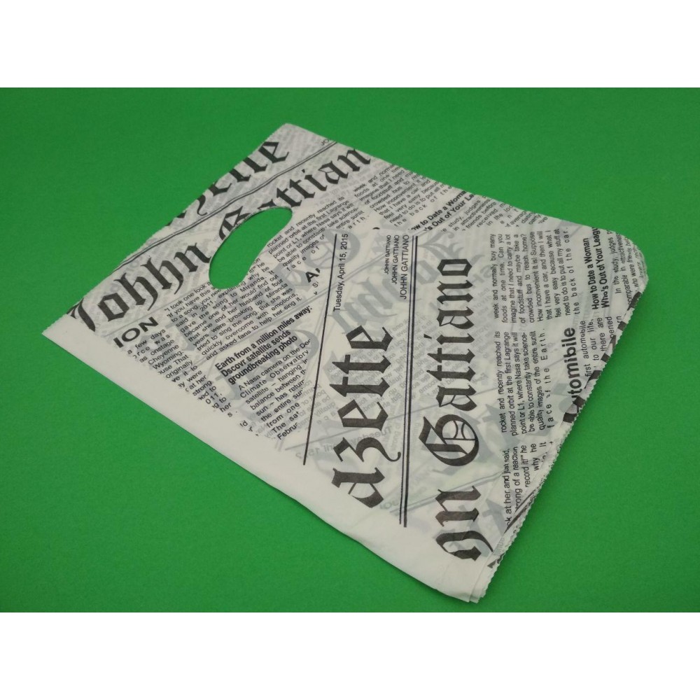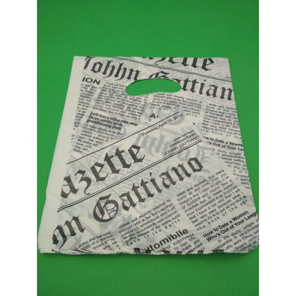 Пакет с рисунком прорубная ручка размер 20х25 "Газета" Комсерв 100 шт/уп.