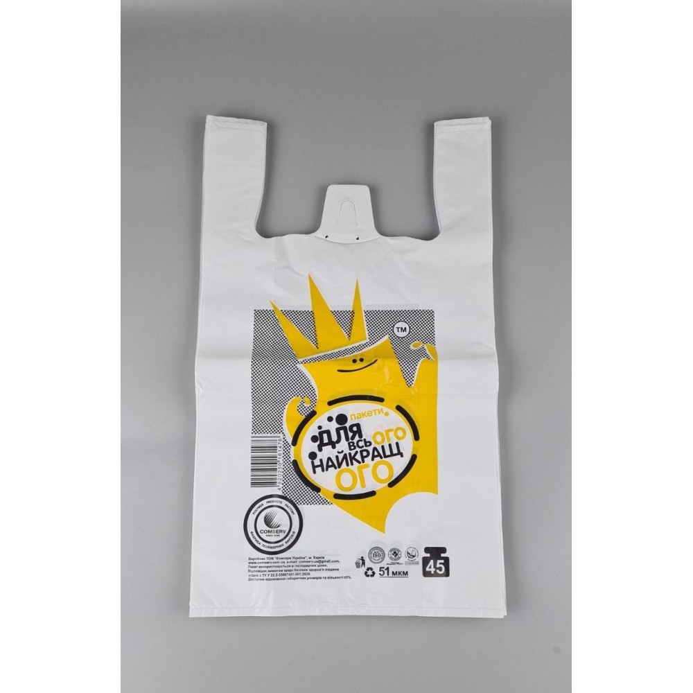 Полиэтиленовые пакеты в форме майки удобны и достаточно прочны, имеют экономичную цену, поэтому занимают ведущие позиции по популярности у потребителей. Их применяют для разных целей: от упаковки небольших изделий, до переноски крупных товаров. Некоторые такие пакеты выдерживают вес до 50 кг.