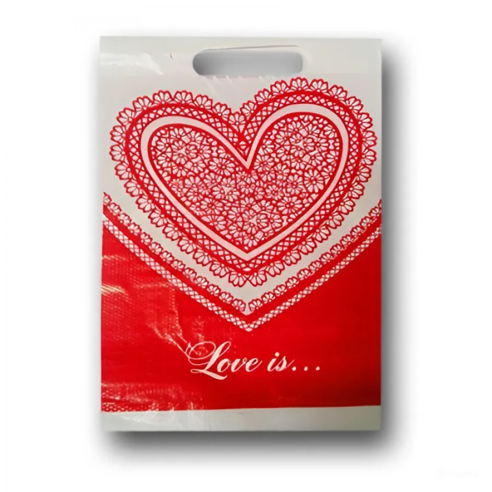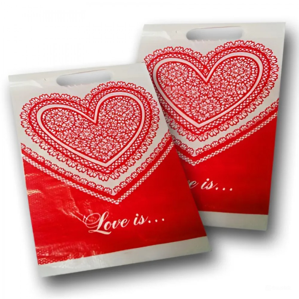 Пакеты полиэтиленовые с вырубной ручкой размер 20х30 "Сердце большое" 100 шт/уп.
