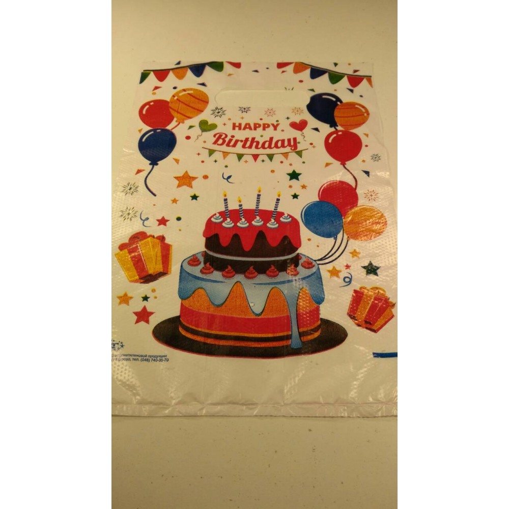 Полиэтиленовый пакет с прорубной ручкой размер 20х30 "С Днём рождения" ХВГ 100 шт/уп.