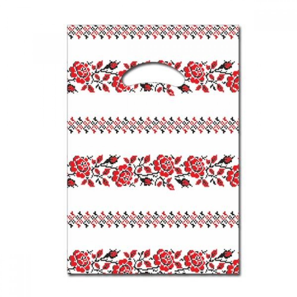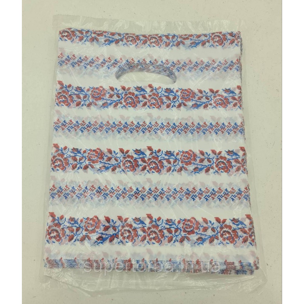 Пакет полиэтиленовый с прорубной ручкой "Вышиванка" размер 20х25 100 шт/уп.