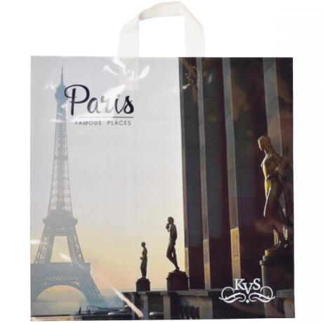 Ламінований поліетиленовий пакет з ручками-петлею. Розмір пакета 44х43 см. В упаковці міститься 50 штук. Малюнок розташований з одного боку.