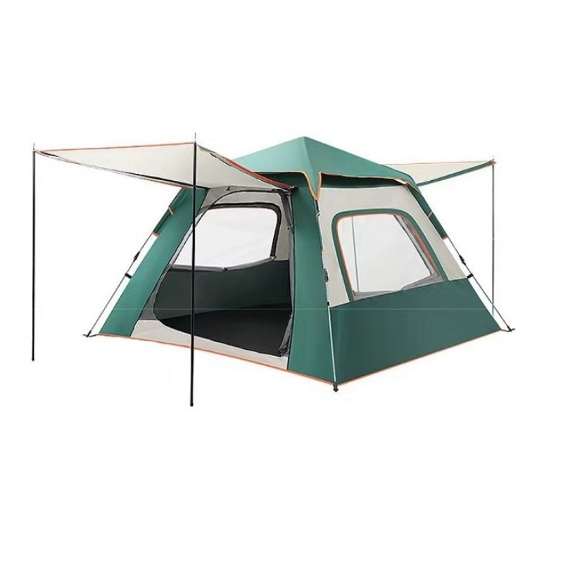 Самораскладывающаяся палатка (палатка автомат) – это палатка, каркас которой, сделан из неразъёмных упругих колец. В отличии от традиционной, которые необходимо долго устанавливать, закреплять колышки, растягивать верёвками и т.д., автоматическую палатку достаточно освободить от чехла и расправить. Верхняя часть изделия сделана из полиэстера. Этот материал прочный и эластичный, не пропускает влагу. Дно палатки выстелено полиэтиленом. Данный вид материала знаменуется отменными влагоотталкивающими свойствами, легко очищается, а также имеет высокую плотность, которая не позволяет палатке растягиваться и рваться. Модель снабжена антимоскитной сеткой, которая обезопасит вас от дискомфорта и надоедливых насекомых. Дуги палатки сделаны из прочного материала Fiberglass. Даже при постоянном складывании и раскладывании палатки дуги не деформируются и не ломаются. В комплект входит сумка для переноски палатки. Палатку нужно беречь от открытого огня и высоких температур. Ставьте палатку на твердой поверхности, храните в чистом и сухом виде.