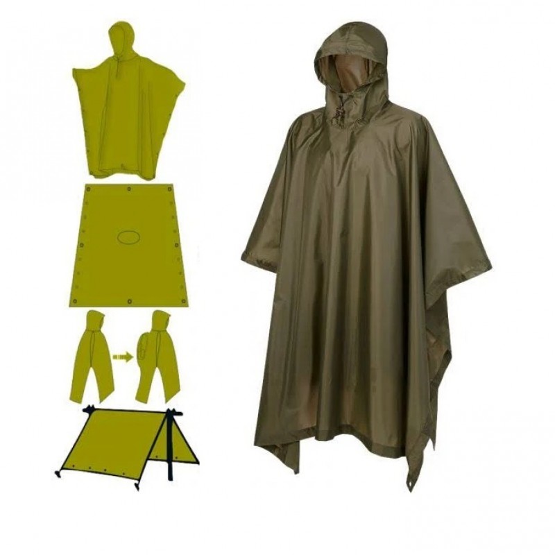 Многофункциональное изделие, которое может служить влагозащитной накидкой от непогоды, тентом или палаткой, как временное укрытие от солнца и дождя или покрывалом на землю, а также мягкой подушкой под голову сложенное в чехол. Отлично защищаем от дождя. Качественный и надежный тактический дождевик-пончо выполнен из прочной и легкой ткани. Дождевик не сковывает движения, очень практичный, можно использовать как палатку.Материал: Плащевка с пропиткой; Размер: Универсальный; Чехол в комплекте; Ширина 150 см Высота (без капюшона) 104 см Высота с капюшоном 134 см