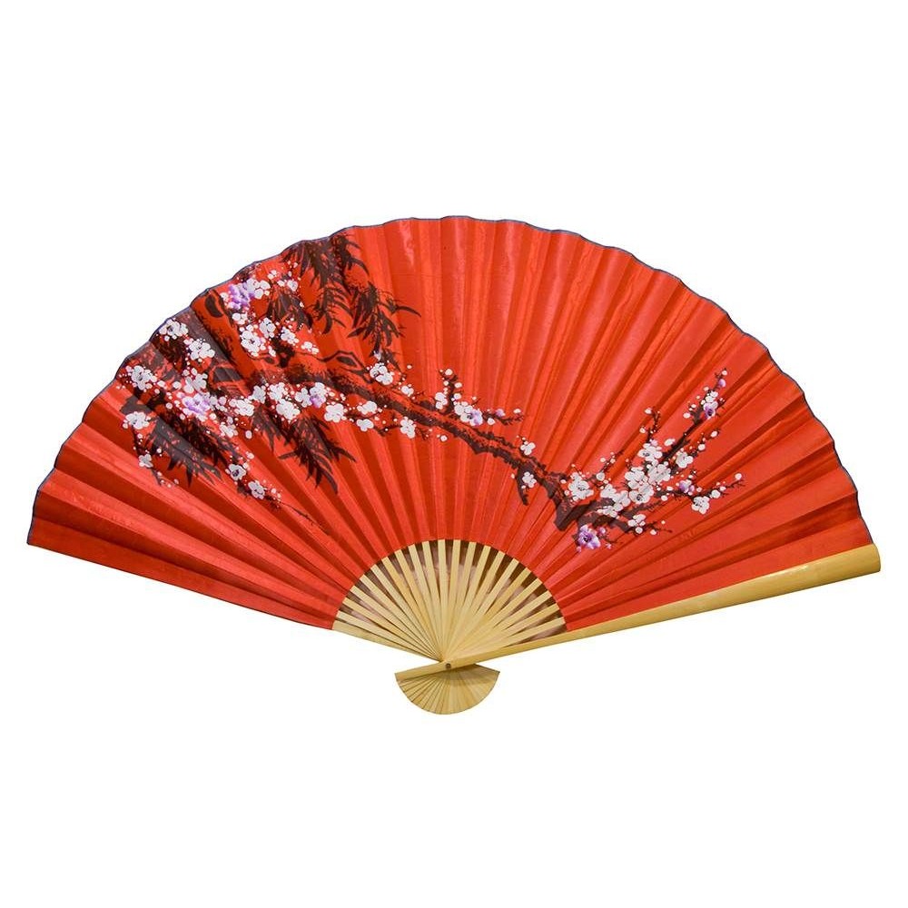 Веер настенный Сакура на красном фоне шелк (90см) код 24950