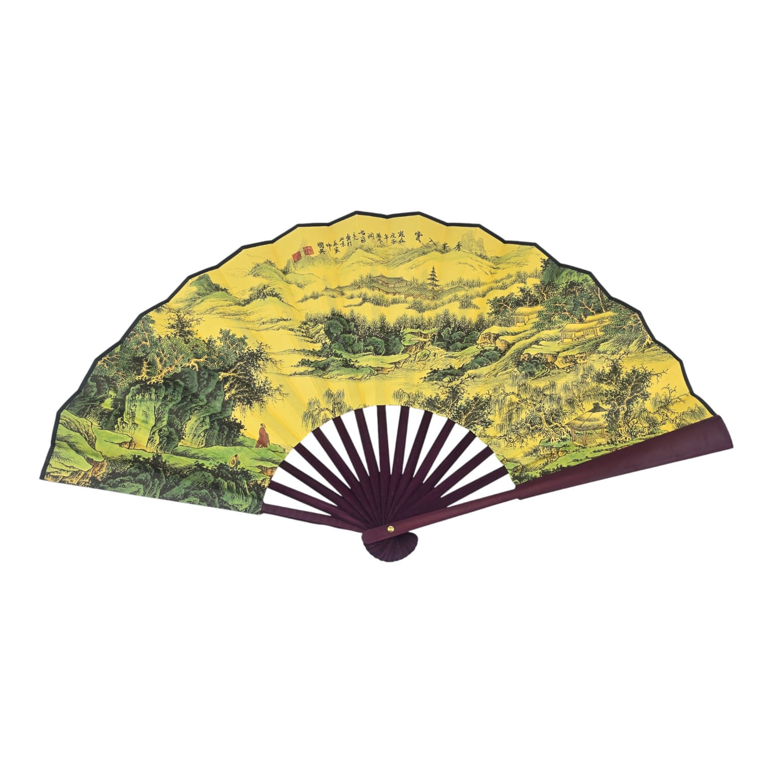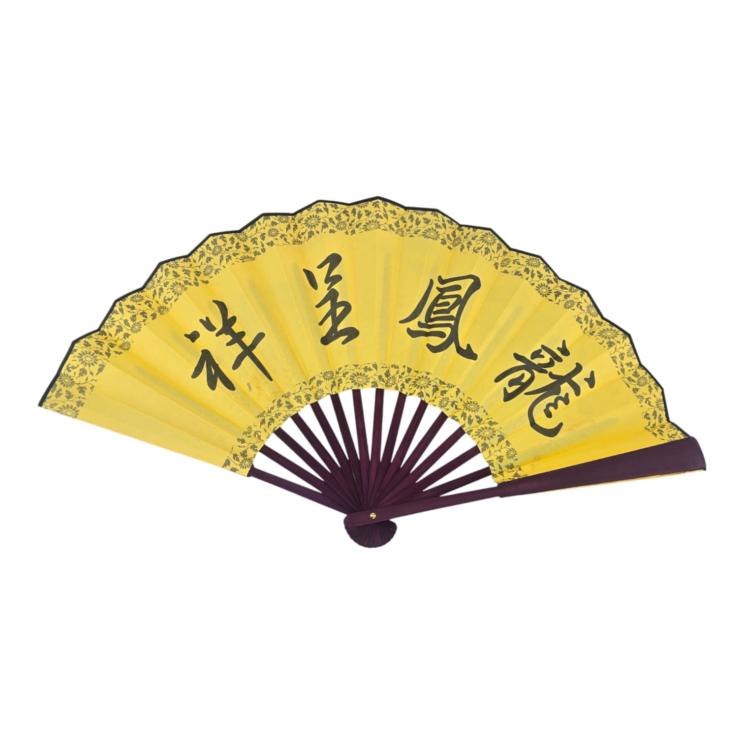 веер шелковый, веер бамбук, китайский веер, декоративный веер, настенный декор, веер для фото, веер для танцев, восточный стиль, жёлтый веер, веер с каллиграфией, пейзаж на веере