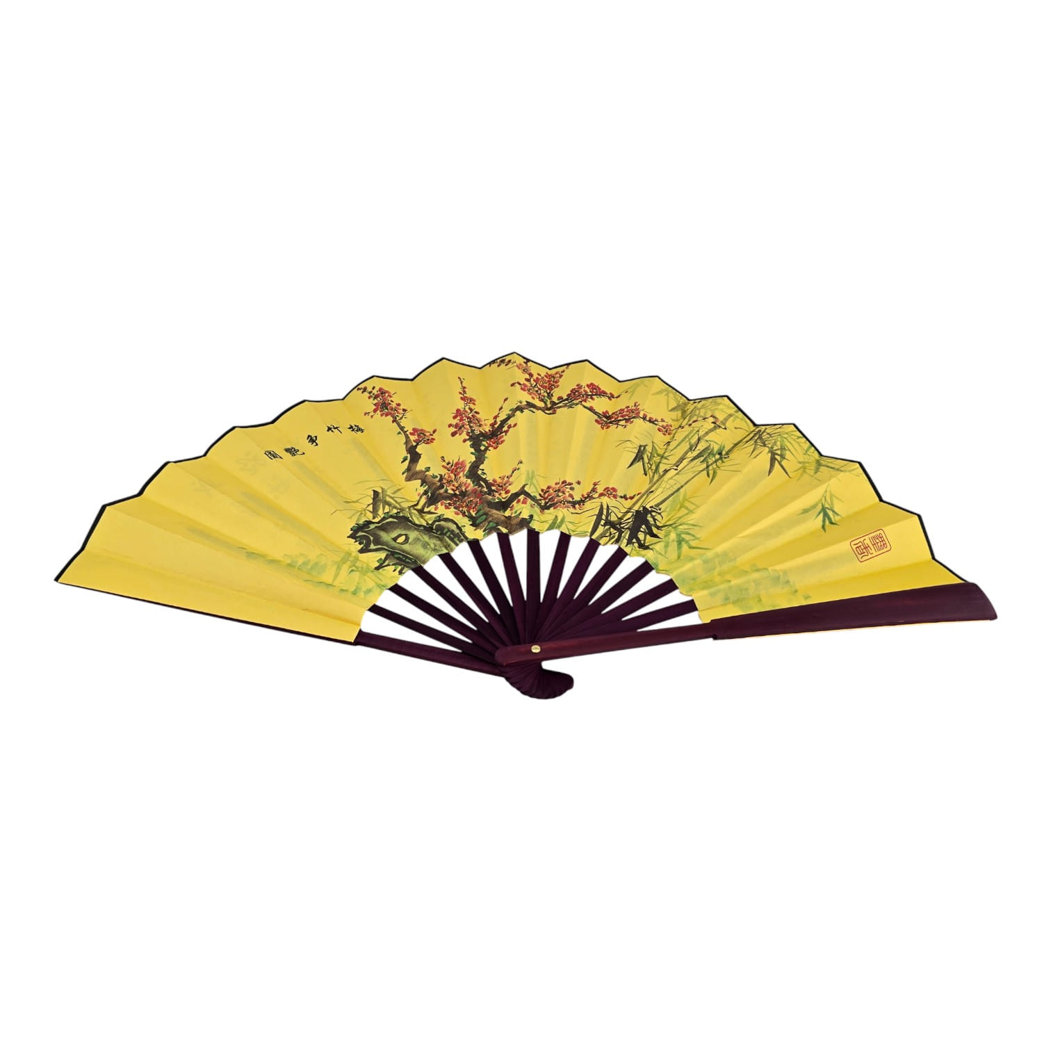 китайский веер, веер шелковый, бамбуковый веер, декоративный веер, веер для танца, настенный декор, восточный стиль, жёлтый веер, веер для фото, подарок