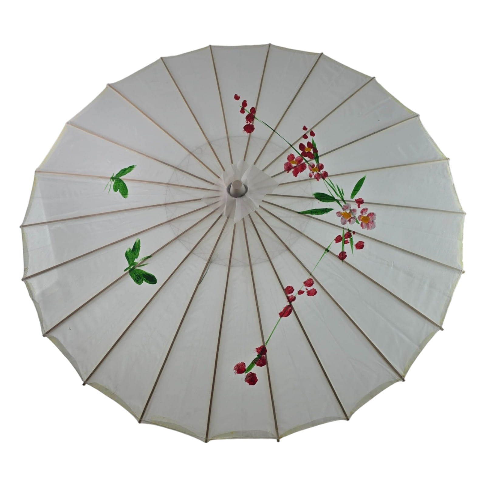 Этот удивительный зонтик представляет собой воплощение изысканности и традиций. Он изготовлен из легкого и прочного бамбука, который придает ему невесомость и естественную красоту. Покрытие из натурального шелка, белого цвета, добавляет изысканности и придает этому зонтику уникальный внешний вид.