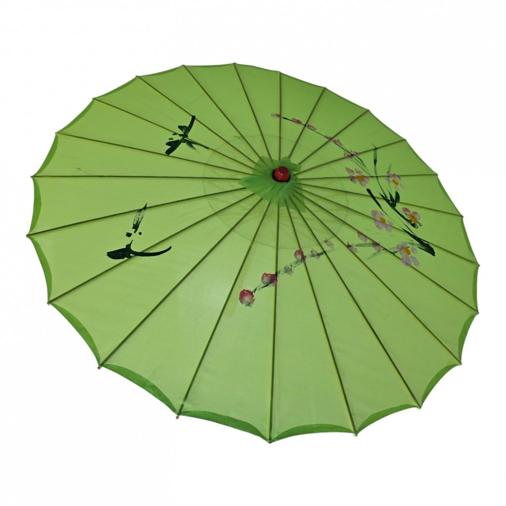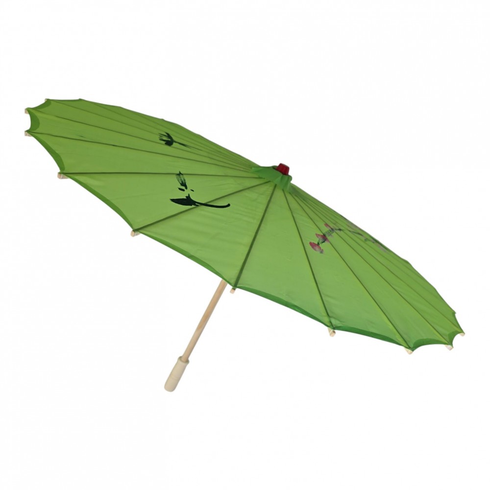 Этот удивительный зонтик представляет собой воплощение изысканности и традиций. Он изготовлен из легкого и прочного бамбука, который придает ему невесомость и естественную красоту. Покрытие из натурального шелка, зеленого цвета, добавляет изысканности и придает этому зонтику уникальный внешний вид.