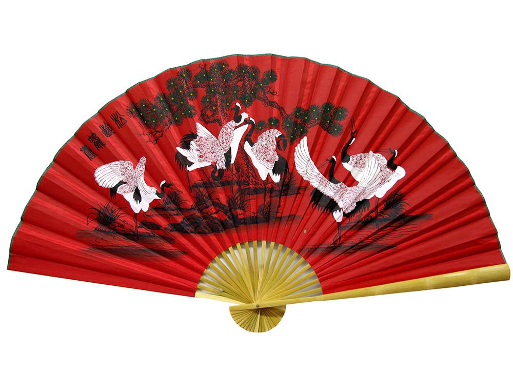 Веер настенный "8 журавлей на красном фоне" (90см в развороте 156х90 см)
