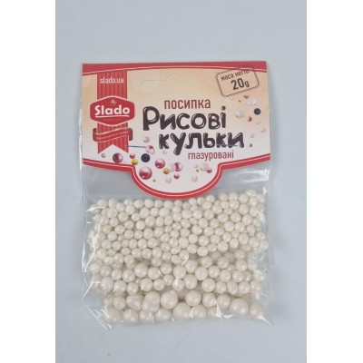 Посыпка рисовые шарики глазированные 20грм (голубой ,белый,серебряный) Ш70 (1 шт)