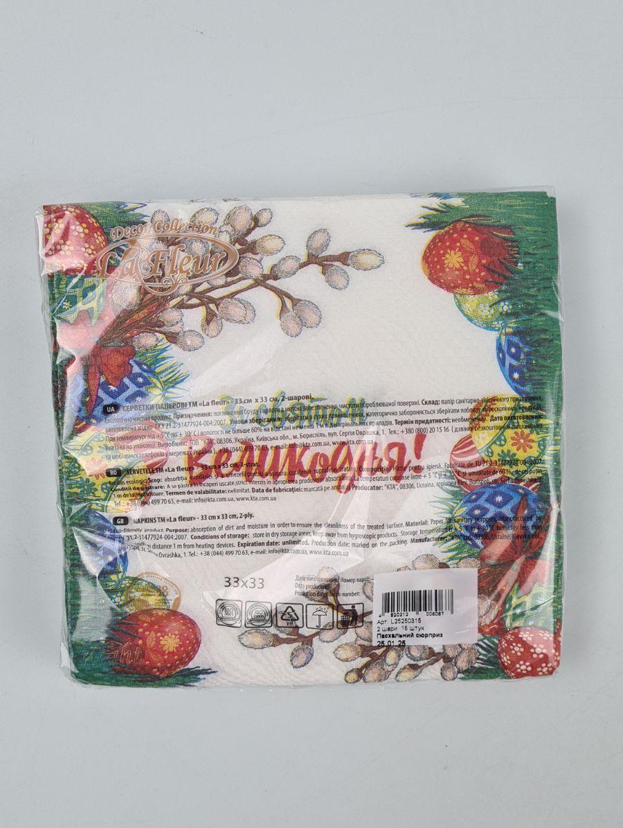 Пасхальная бумажная двухслойная салфетка (ЗЗхЗЗ, 16шт) La Fleur "Пасхальный сюрприз"067 (1 пачка)