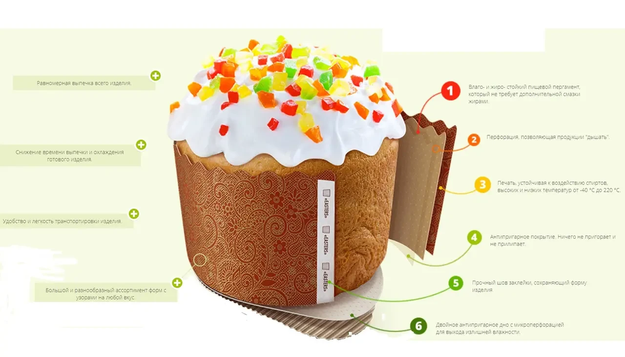 Бумажные формы для пасок очень удобные и разнообразны по рисункам. Они не требуют дополнительного смазывания жирным маслом или сливочным маслом и предназначены для одноразового использования, что делает процесс приготовления пасхальных десертов быстрым и безопасным.
