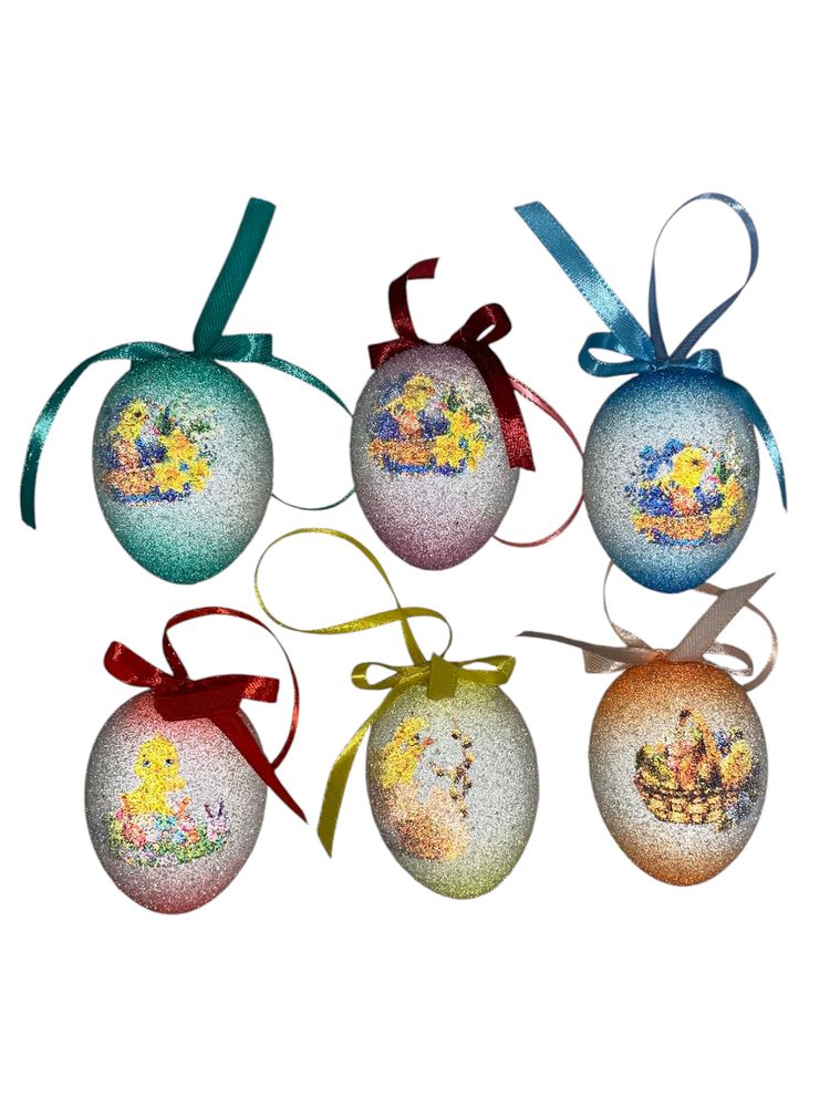 Набор пасхальных яиц 6 х 4,5см "Сахарные" с рисунком - 6шт с лентой (L00149)