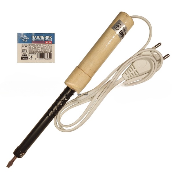 Электрический паяльник используется для нагрева деталей, флюса, расплавления припоя и его нанесения на место контакта спаиваемых деталей. В результате пайки получается неразъёмное соединение спаиваемых элементов. Данный паяльник питается от сети 220
