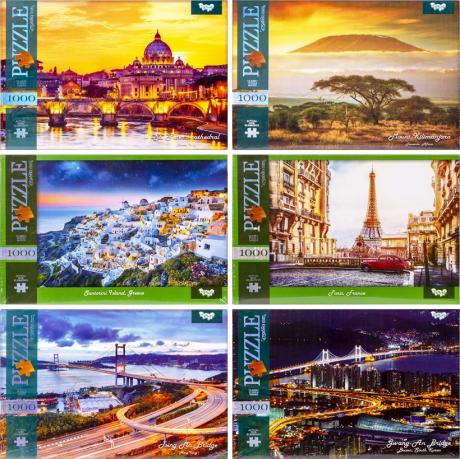 Картонні пазли 1000 елементів, 680х475мм, картинки в асортименті