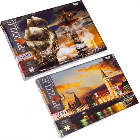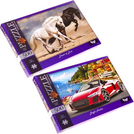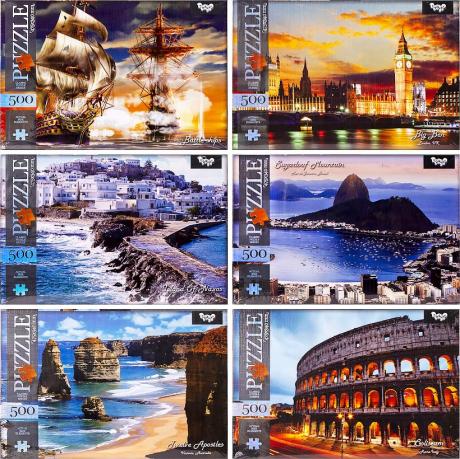 Цей пазл складається з 500 картонних елементів. Розмір готового зображення становить 475 х 340 мм. Доступні різні картинки.