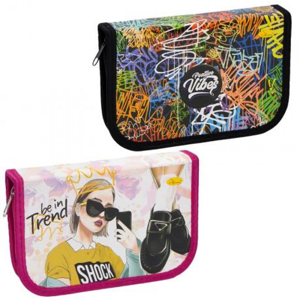 Ламінований пенал на змійці, одне відділення. Картинки в асортименті. Розмір 19х13 см