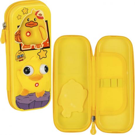 Пенал шкільний дитячий з 3D каченям — яскравий і оригінальний пенал для учнів молодших класів. Оснащений жорстким корпусом, що захищає вміст від пошкоджень, та внутрішніми фіксаторами для зберігання ручок, олівців, гумок і лінійок. Оформлений об’ємною фігуркою у вигляді каченяти, яка обов’язково сподобається дітям. Упакований у блистер — зручно для вітрини та продажу.