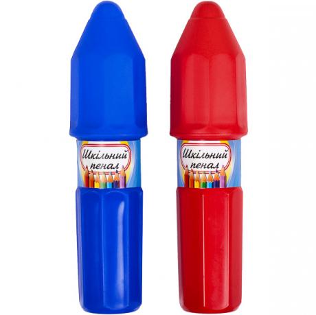 Пенал учнівський пластиковий в формі олівця, одне відділення. Кольори: червоний і синій, розмір 19,5 * 4 см