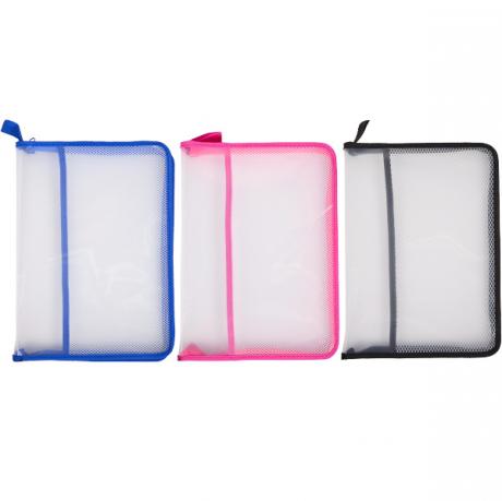 Папка пластикова А4 на блискавці з сітчастою кишенею (кольори в асортименті) — зручна та практична папка для зберігання документів, зошитів, канцелярії та дрібниць. Прозорий корпус дозволяє швидко знайти потрібне, а міцний пластик захищає вміст від вологи та пошкоджень. Застібка-блискавка надійно фіксує папери всередині, а додаткова внутрішня сітчаста кишеня допомагає організувати простір. Кольори оздоблення — в асортименті. Формат: А4. Ідеальний вибір для навчання, роботи та поїздок.
