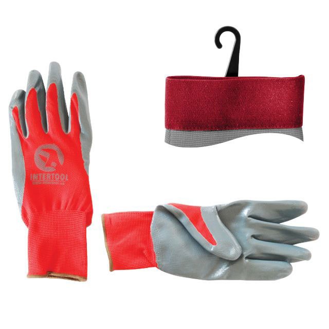 Перчатка красная вязанная синтетическая, покрытая серым нитрилом на ладони 10" INTERTOOL SP-0124