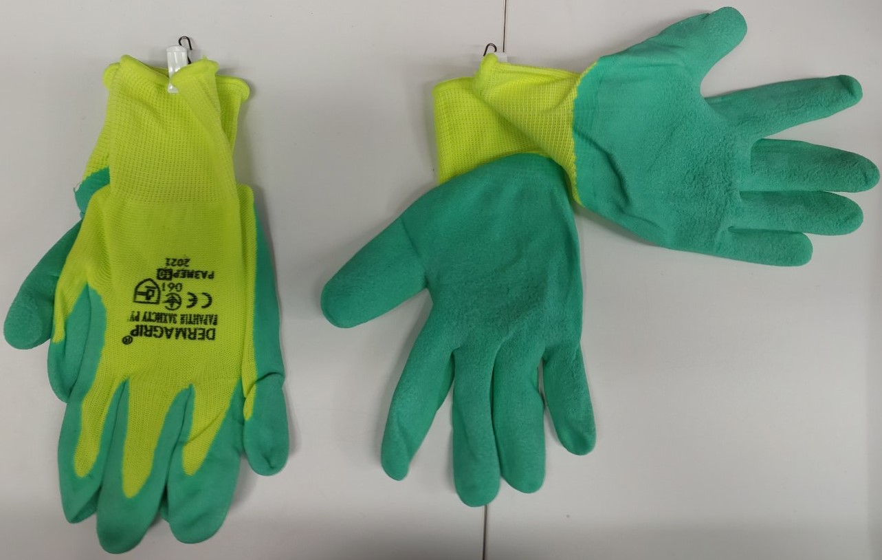 Перчатка хлопчатобумажная трикотажная с резиновым вкраплением с одной стороны (ПВХ зеленая)