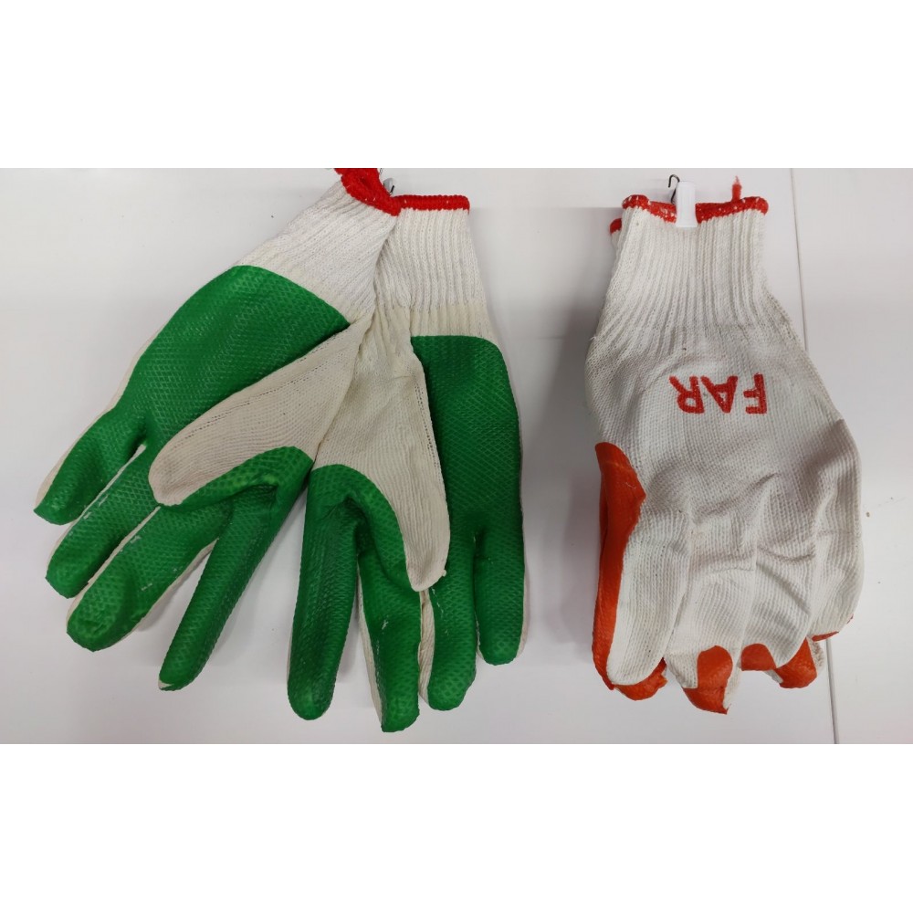 Перчатка хлопчатобумажная трикотажная с резиновым вкраплением с одной стороны (ПВХ зеленая)