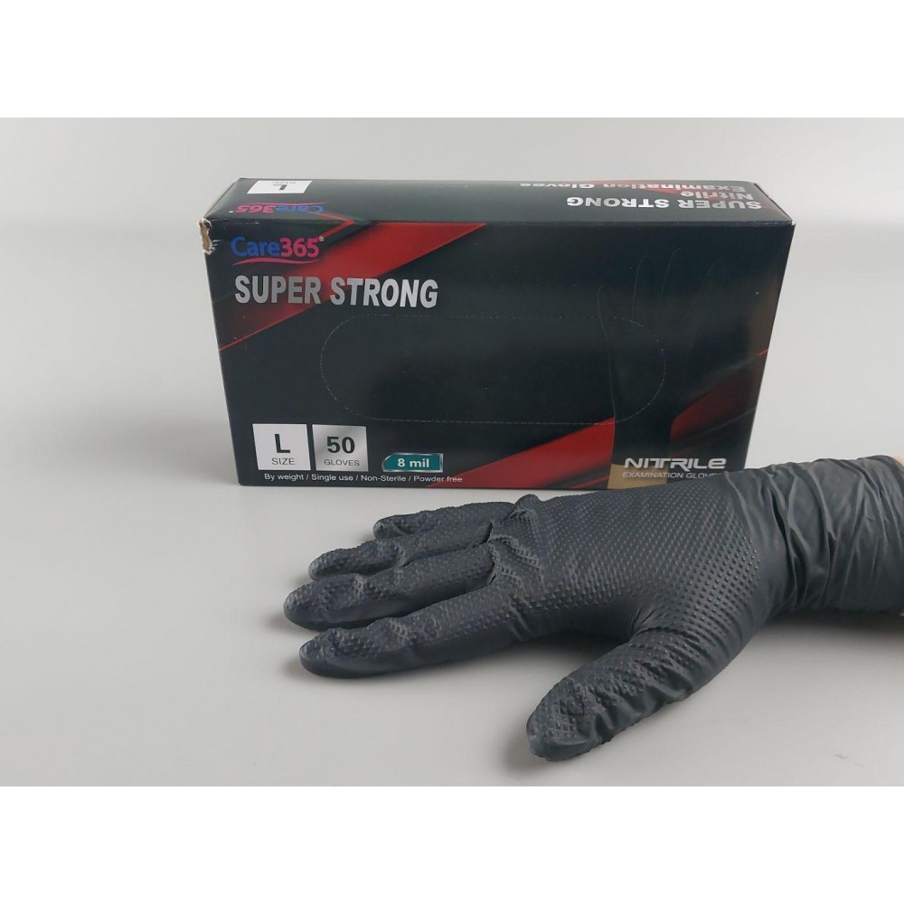 Перчатки нитриловые черные суперпрочные 50 шт. хозяйственные, размер L "CARE 365" (1 пачка)