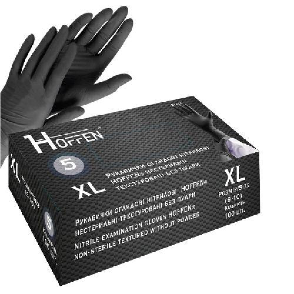 Перчатки нитриловые XL Hoffen 5.0г нестерильные текстурированные б/п 50пар/уп