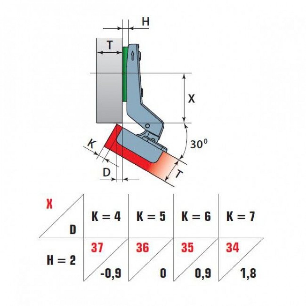 Петля Linken System A для фасадов с установкой под углом 30 градусов.