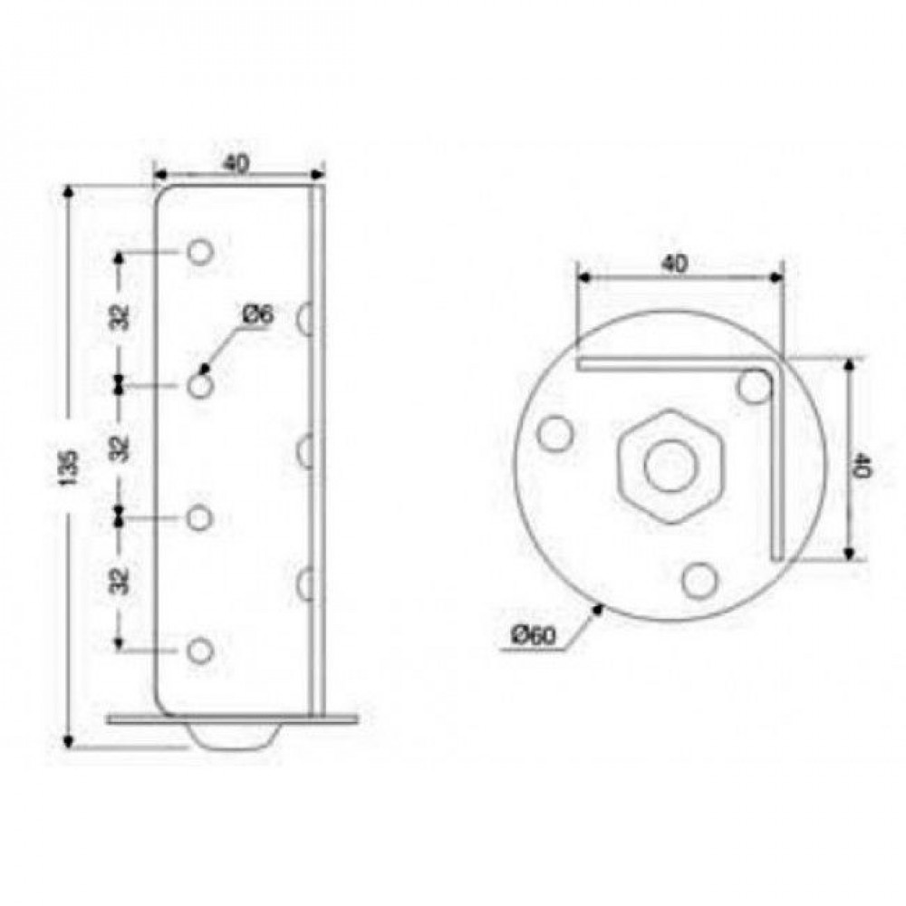 Угол для опор с пластиной d60 под болт 40*40*135 мм Mesan (Турция) 2 мм