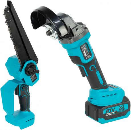Універсальний акумуляторний набір 6-в-1 призначений для будівельних, монтажних, ремонтних і садових робіт. До комплекту входять: безщіткова кутова шліфувальна машина 125 мм, безщітковий електричний гайковерт, безщітковий перфоратор 26 мм, щітковий ударний дриль 13 мм, безщітковий акумуляторний секатор та щіткова ланцюгова пила з шиною 8 дюймів.