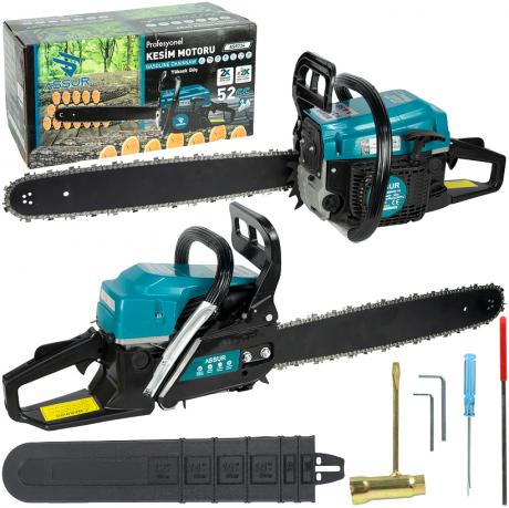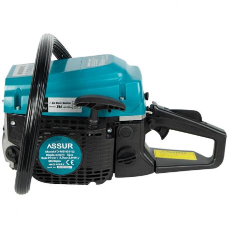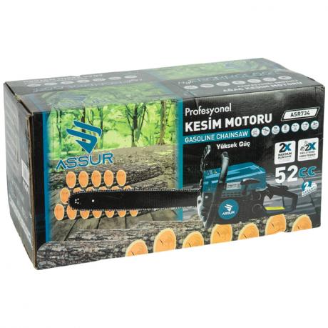 Бензинова ланцюгова пила ASR734 призначена для розпилювання деревини, заготівлі дров, садових і будівельних робіт. Оснащена потужним двигуном об’ємом 52 см³ з вихідною потужністю 2,0 кВт (2,9 HP) та робочою швидкістю до 8000 об/хв, що забезпечує високу продуктивність і стабільну роботу під навантаженням. Довжина шини становить 55 см, ведуча зірочка — 38 зубців. Передача здійснюється через надійний колінчастий вал. Об’єм паливного бака — 550 мл, об’єм масляного бака — 260 мл, що дозволяє працювати тривалий час без частих дозаправок. Система запалювання — свічка запалювання, паливо — бензин. Пила підходить для побутового та напівпрофесійного використання.