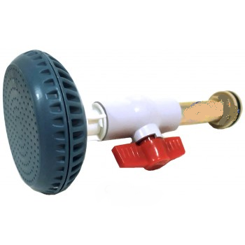 В комплект душа входят: кран длиной 10 см, сгон 10 см, насадка диаметром 9 см, 2 резиновые гайки и 2 прокладки. Резьба на кране и на насадке 3/4".