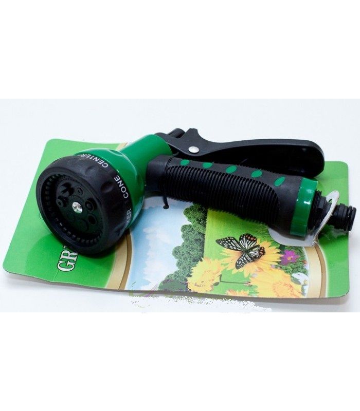 Пистолет поливочный 7-ми функциональный подключается к шлангу с помощью коннектора соотвествующего размера. Поливочный пистолет - это многофункциональное устройство, которое применяется для орошения и полива растений, промывки садовых емкостей, уборки инвентаря и приусадебных участков. Данная насадка обеспечивает сверхточное орошение определенного участка с садовыми и овощными культурами. Пистолет имеет 7 режимов подачи воды от высокточной ударной струи до мелкодисперсного распыления, с помощью регулятора можно выбрать наиболее подходящий в конкретной ситуации. Изделие выполнено из противоударного пластика. Пистолет оснащен фиксатором, который обеспечивает непрерывный полив.
