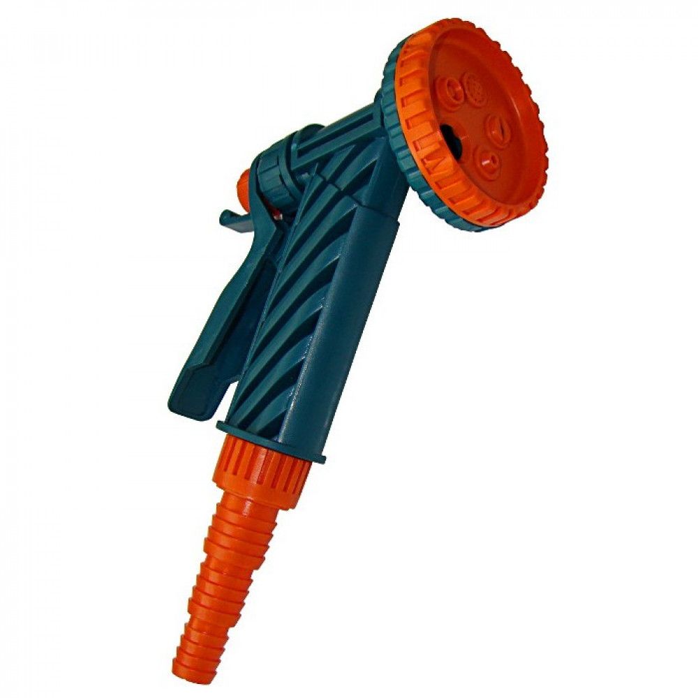 Пистолет поливочный 5-режимный соединяется со шлангом с помощью универсального штуцера. Данный поливочный пистолет - это многофункциональное устройство, которое применяется для орошения и полива растений, промывки садовых емкостей, уборки инвентаря и приусадебных участков. Данная насадка обеспечивает сверхточное орошение определенного участка с садовыми и овощными культурами. Пистолет имеет 5 режимов подачи воды, с помощью регулятора можно выбрать наиболее подходящий в конкретной ситуации. Изделие выполнено из высокопрочного пластика. Пистолет 5-функциональный оснащен фиксатором, который исключает постоянное удерживание ручки во время полива.