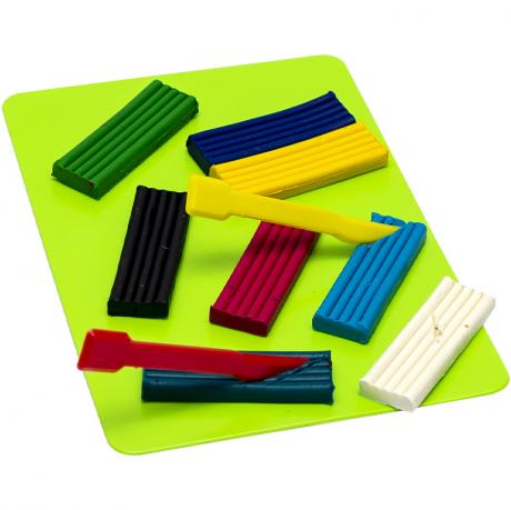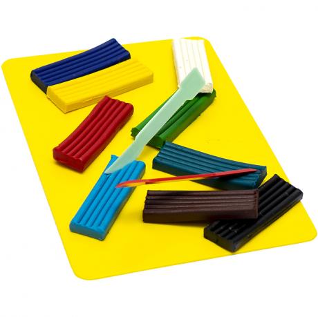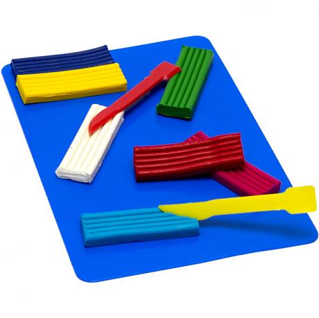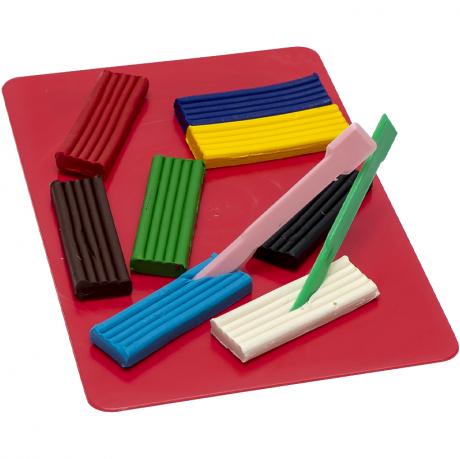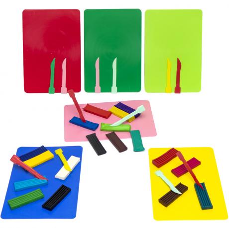 Пластикова дошка для пластиліну з ножем (стеком). кольори в асортименті. Євро-упаковка. Формат А5.