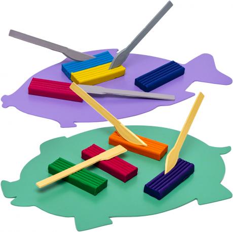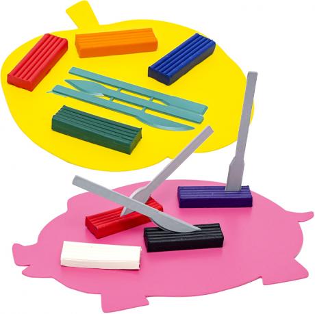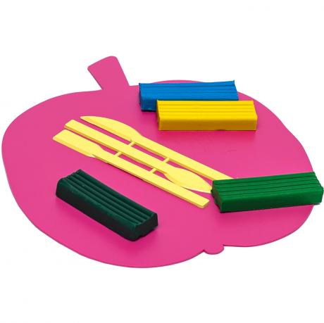 Пластикова дошка для пластиліну з ножем (стеком). кольори в асортименті. Євро-упаковка. Розмір 220х190 мм