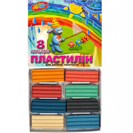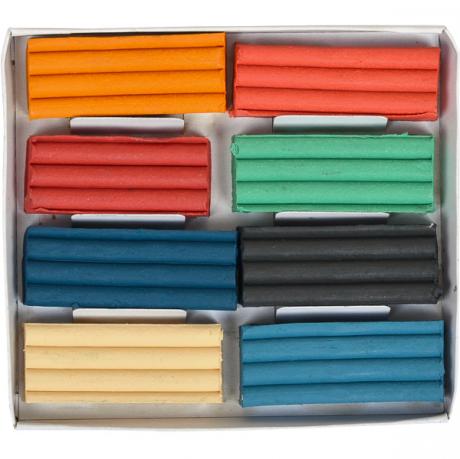 Пластилін 8 кольорів, 130 г на восковій основі, не липне до рук, не токсичний. Матеріал для ліплення. Забарвлюється в різні кольори. Служить для виконання фігур ескізів для скульптурних робіт, невеликих моделей, виготовлення малих форм.
