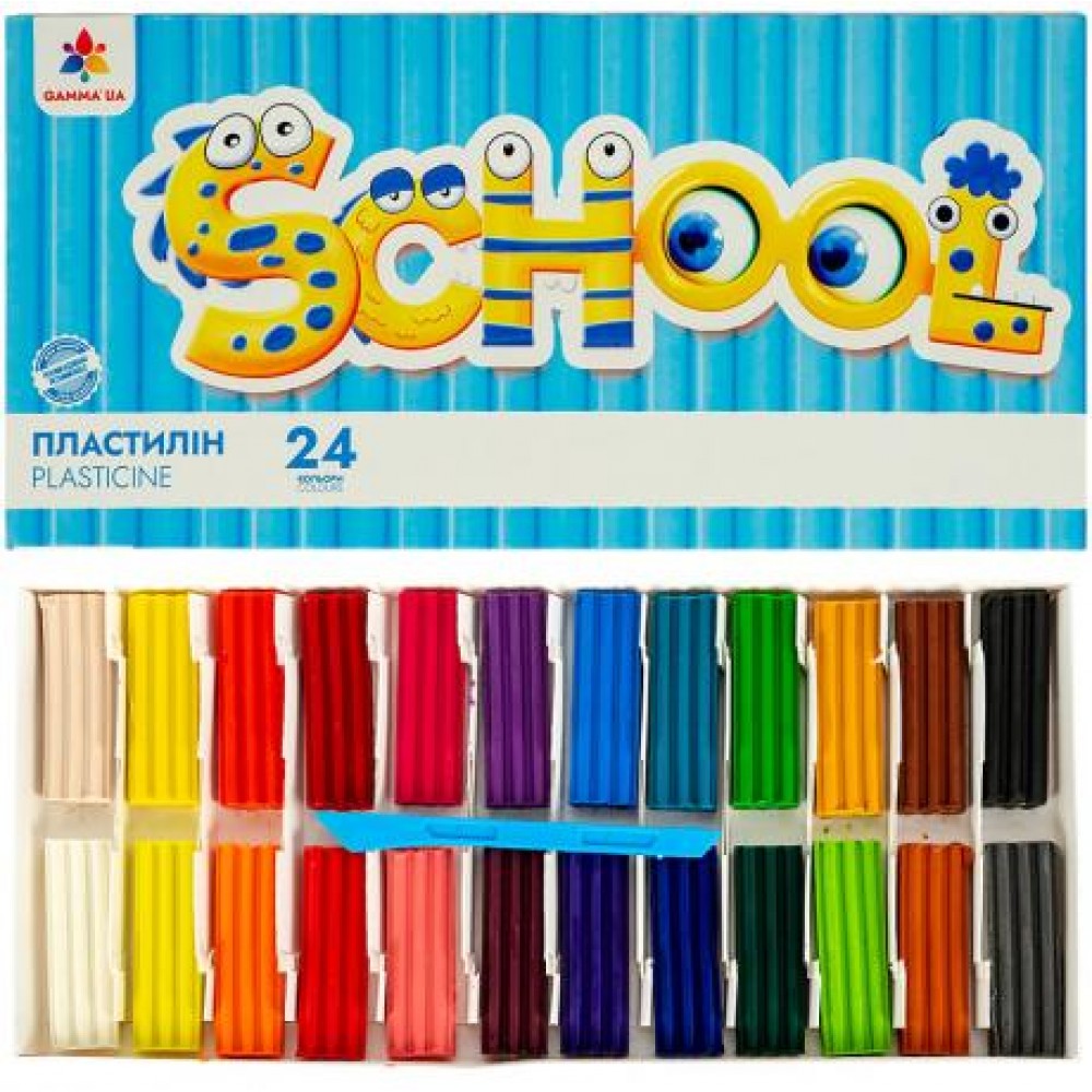 Пластилін містить 24 кольори і ножик. Виготовлений на восковій основі, не липне до рук і не токсичний. Використовується для ліплення фігур, ескізів, скульптурних робіт та малих моделей. Розмір упаковки 32*15*2см