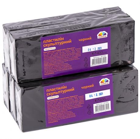 Пластилін скульптурний 400г чорний "Гамма" . Служить для виконання фігур ескізів для скульптурних робіт, невеликих моделей, творів малих форм. В упаковці два бруски розміром 17 х 6,5 х 1,5 см