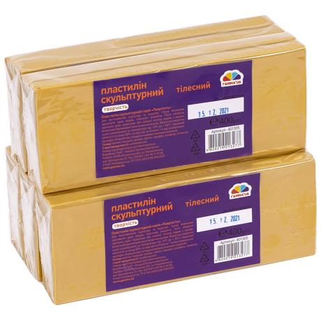 Пластилін скульптурний 400г телесный "Гамма". Служить для виконання фігур ескізів для скульптурних робіт, невеликих моделей, творів малих форм. В упаковці два бруски розміром 17 х 6,5 х 1,5 см