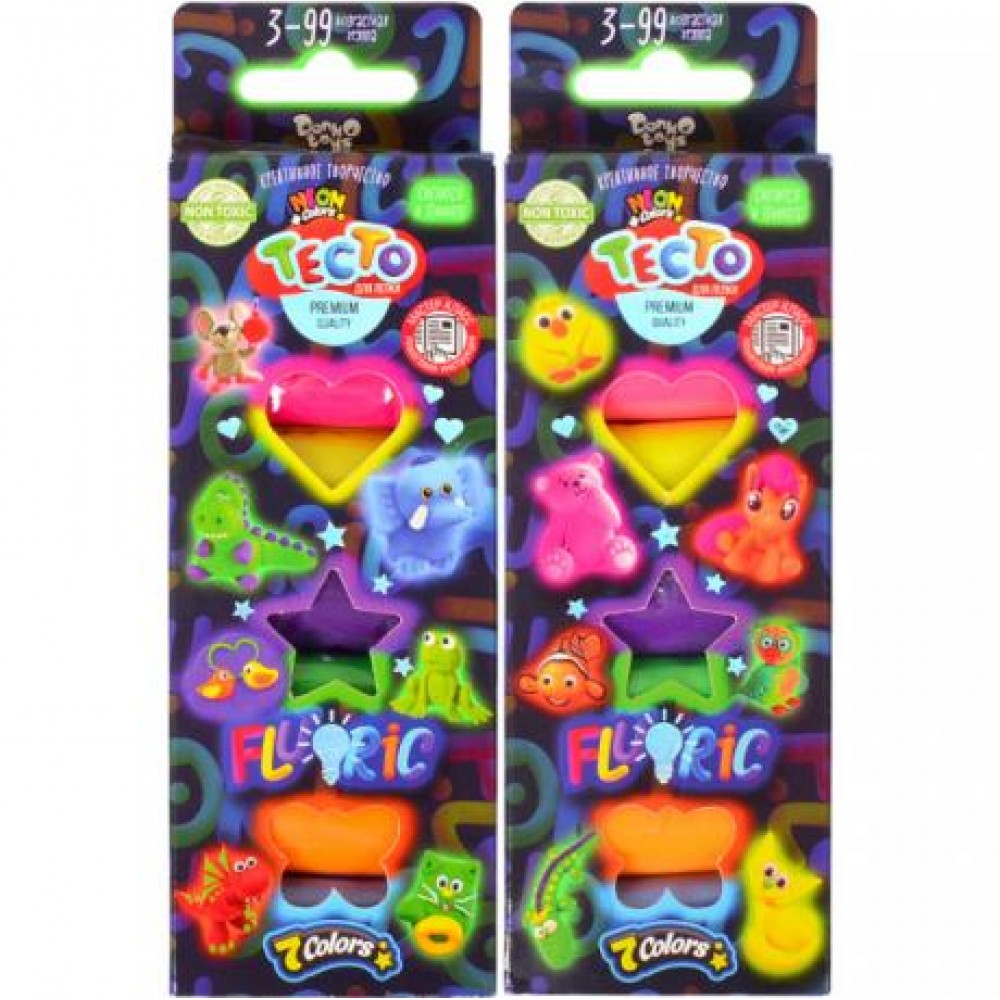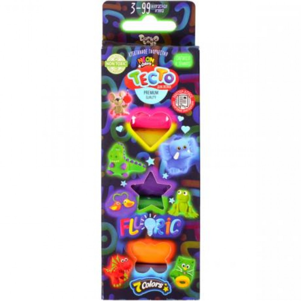 Креативна творчість "Тісто для ліплення" FLUORIC "коробка 7 кольорів (рус яз). Добре тримає форму, дозволяє опрацьовувати досить дрібні деталі скульптури .Не липне до рук і поверхні. Ніжність і пластичність матеріалу сприяє розвитку тактильних відчуттів і дрібної моторики рук дитини. На відкритому повітрі тісто твердне протягом 24-х годин. для збереження еластичності зберігати в недоступному для повітря місці. Яскраве, світиться в темряві і не токсичне. Вік 3+. Розмір упаковки 6 х 19 (16) х 2,3 см. Розмір бруска 6х2см