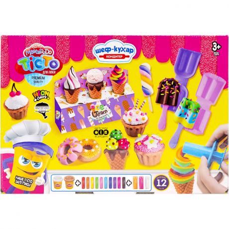 "Master Do" це набір креативного творчості для дітей та дорослих. Тісто дуже м'яке, але добре тримає форму, приємне на дотик, яскраве і безпечне. На відкритому повітрі твердне протягом 24-х годин. Для збереження еластичності зберігати в недоступному для повітря місці. Не токсичне. Комплект містить: тісто в брикетах 10шт, тісто в баночках 2шт, кульковий пластилін 3шт, текстурайзер "вафлі", комплект з двох стеків, скалка, екструдер, вітрина для морозива, формочки 2шт, палички 4шт, інструкція. Оформлення українською мовою. Вік: 3+ Розмір упаковки 26,5 * 19 * 7,5 см.