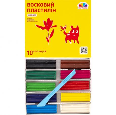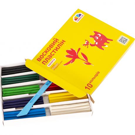 Восковий пластилін містить 10 кольорів і ножик. Не липне до рук, не токсичний. Використовується для ліплення фігур, ескізів, моделей та малих форм.