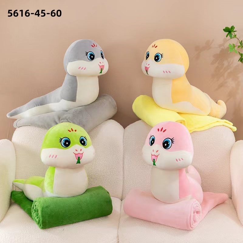 Мягкая игрушка с детским пледом 110/140 см Символ Года Змеи 2025, 60 см длина