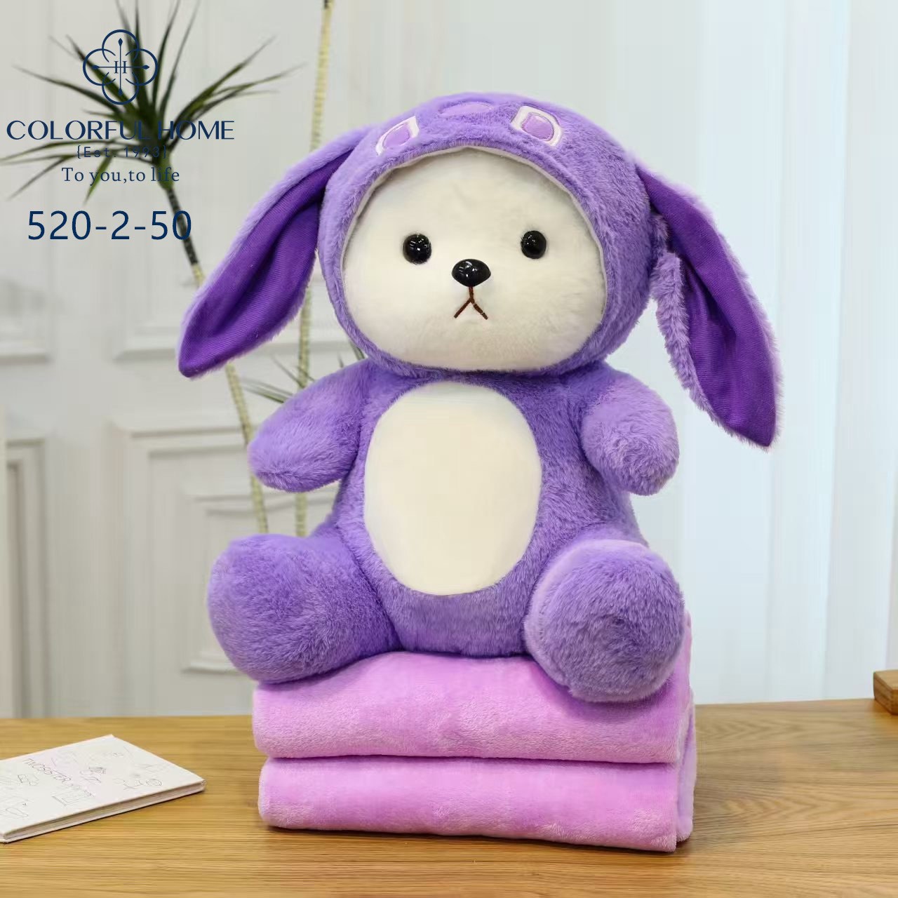 Мягкая игрушка с детским пледом Медведь в капюшоне, Высота игрушки 50 см