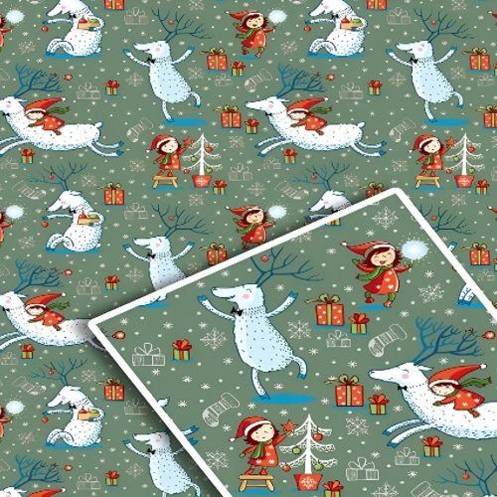 Крафт-бумага подарочная двусторонняя, белый, золотая абстракция, 0,7 х 8м.